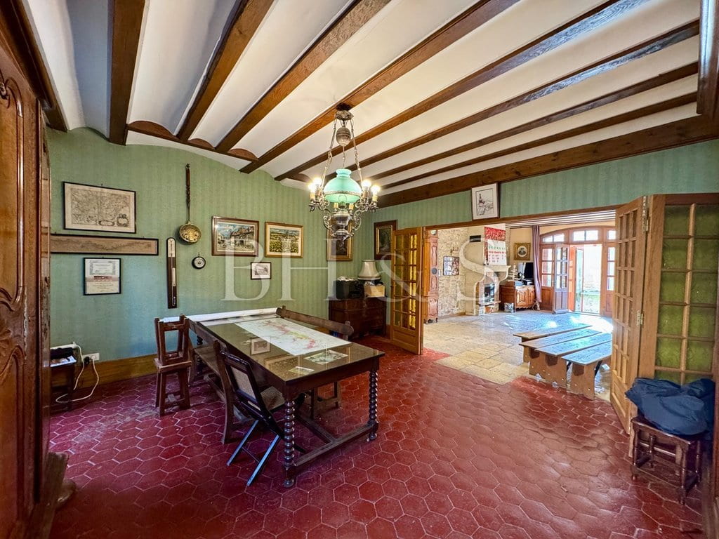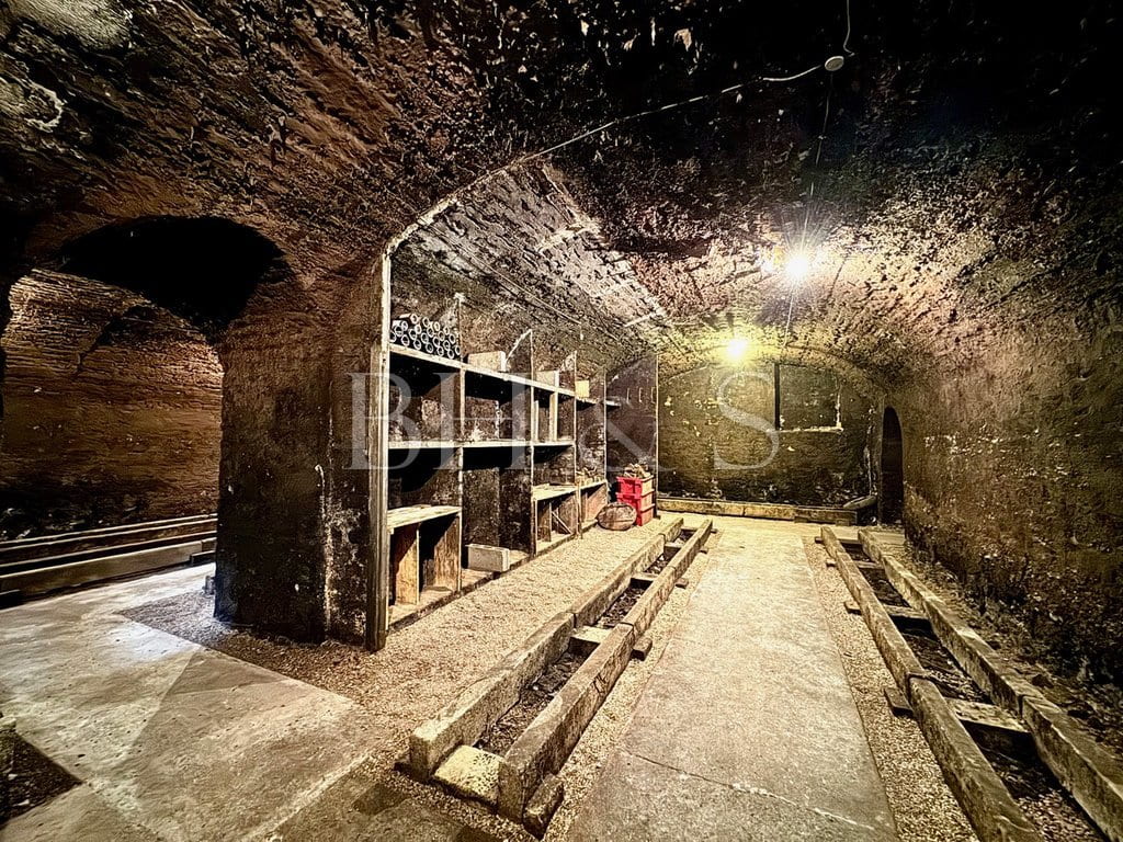 while the vast interior courtyard offers a serene setting, ideal for a pleasure garden or parking. The impressive, vaulted cellars, both in size and architecture, suggest the possibility of a wine-related activity, or could serve as a beautiful