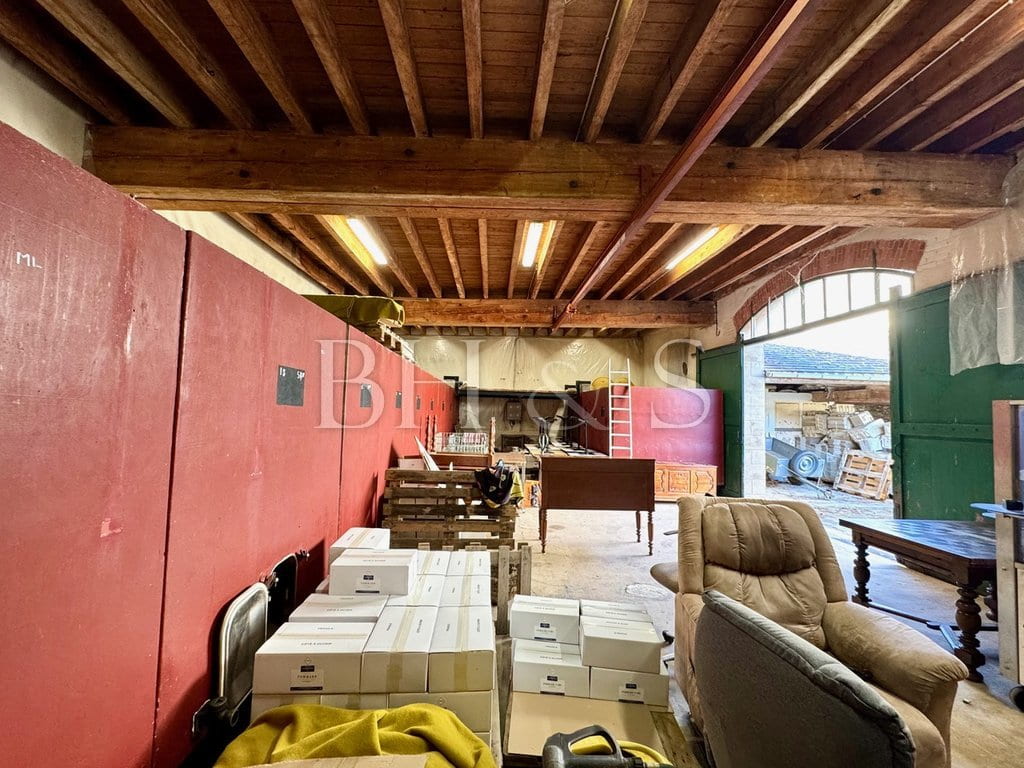 La façade donnant sur la rue assure une excellente visibilité commerciale pour une activité professionnelle, tandis que la vaste cour intérieure offre un cadre serein, idéal pour un jardin d'agrément ou du stationnement.